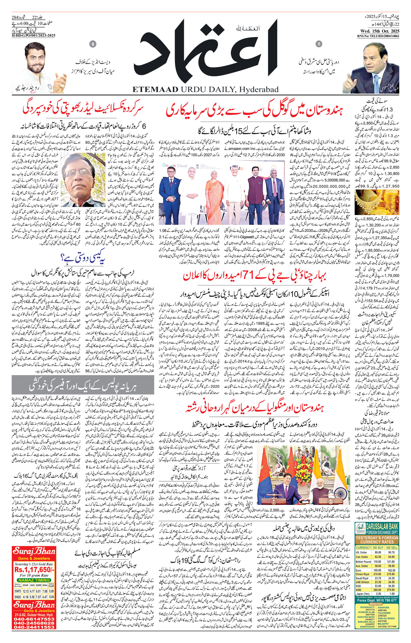 Wednesday 15 Oct, 2025